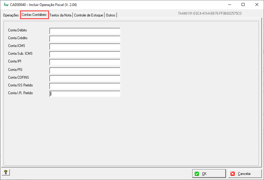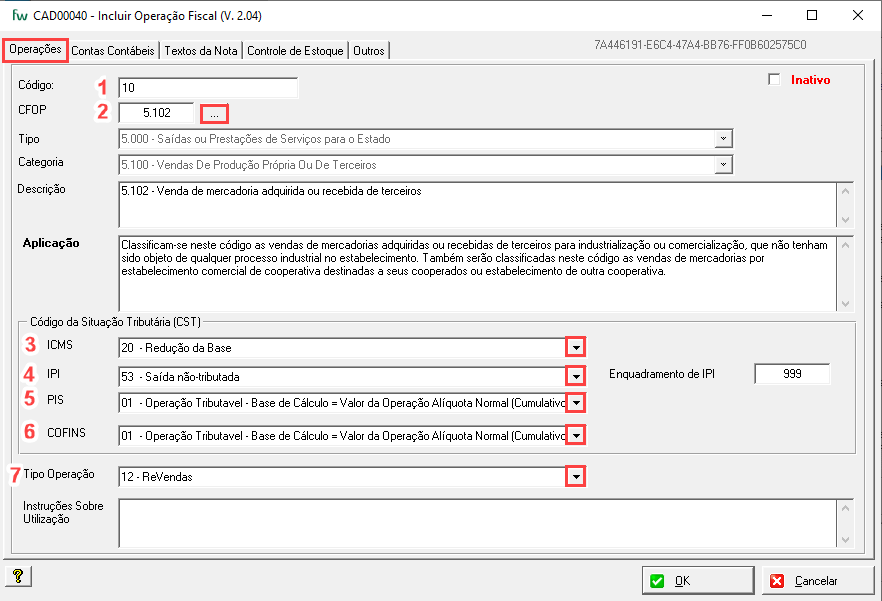 Abrirá a nova janela "CAD00040 - Incluir Operação Fiscal".