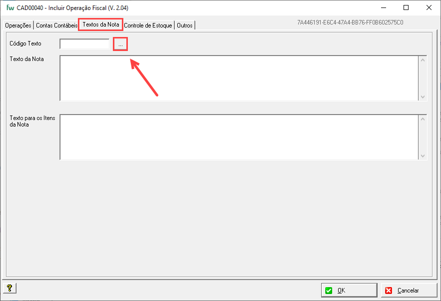 Para cadastrar um texto, clique no botão do campo "Código Texto".