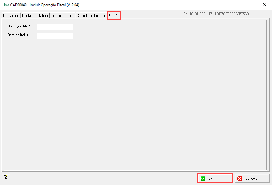 Para salvar o cadastro da Operação Fiscal, clique no botão "OK".