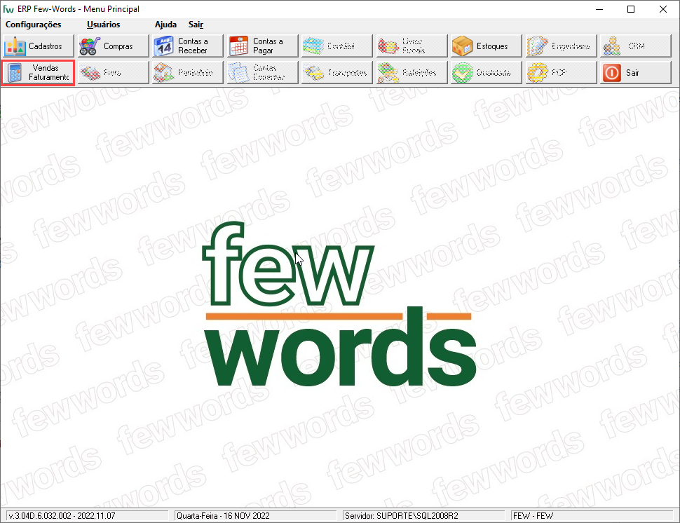 1. No menu principal do sistema, clique no módulo "Vendas/Faturamento".