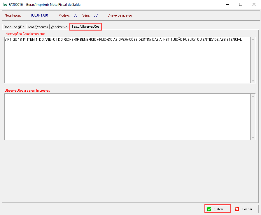 9. Clique no botão "Salvar", para concluir a emissão da Nota Fiscal.