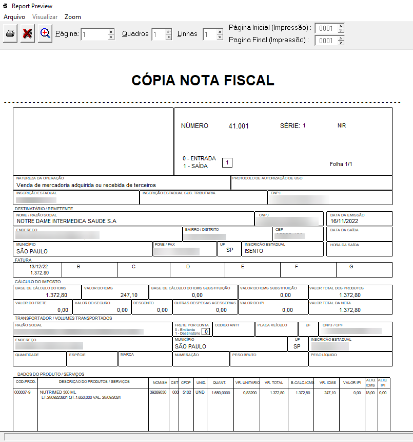 No preview da cópia do DANFE, confira se os dados da Nota Fiscal estão corretos.